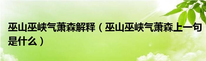 巫山巫峡气萧森解释(巫山巫峡气萧森上一句是什么)