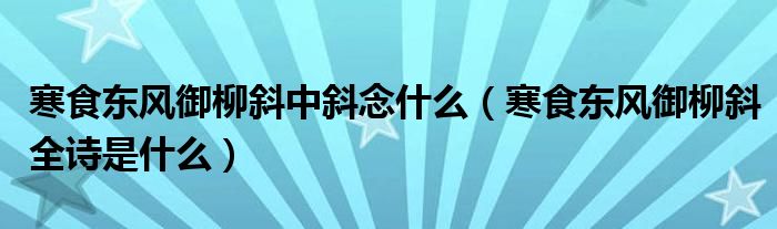寒食东风御柳斜中斜念什么(寒食东风御柳斜全诗是什么)