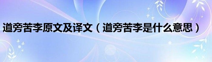 道旁苦李原文及译文(道旁苦李是什么意思)