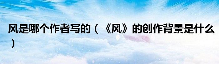 导读 大家好,田田为了大家解答以上风是哪个作者写的,《风》的创作背景是什么的问题,也是到网上收集了关与风是哪个作者写的,《风》的创作背景
