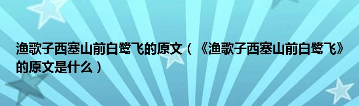 渔歌子西塞山前白鹭飞的原文(《渔歌子西塞山前白鹭飞》的原文是什么)