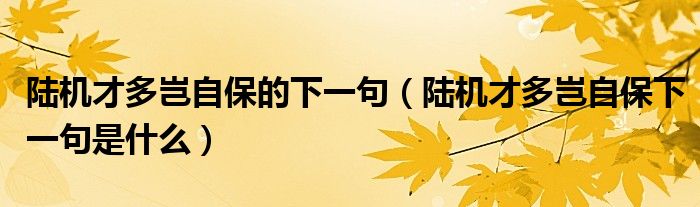 陆机才多岂自保的下一句(陆机才多岂自保下一句是什么)