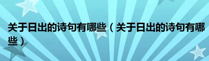 关于日出的诗句有哪些(关于日出的诗句有哪些)