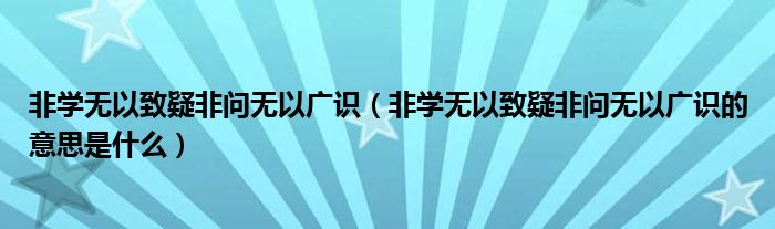 非学无以致疑非问无以广识(非学无以致疑非问无以广识的意思是什么)
