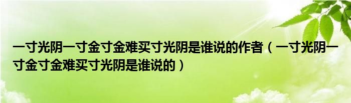 一寸光阴一寸金寸金难买寸光阴是谁说的作者(一寸光阴一寸金寸金难买寸光阴是谁说的)
