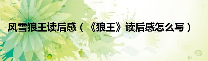 1、 《狼王》如何写好《狼王》阅读后随笔(1)