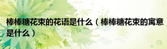 2、 棒棒糖的意思是天长地久,天长地久;棒棒糖意味着你完美无缺;棒棒糖意味着你最爱,你专一;棒棒糖花束是爱你很久的象征。