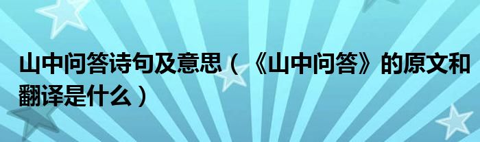 山中问答诗句及意思(《山中问答》的原文和翻译是什么)