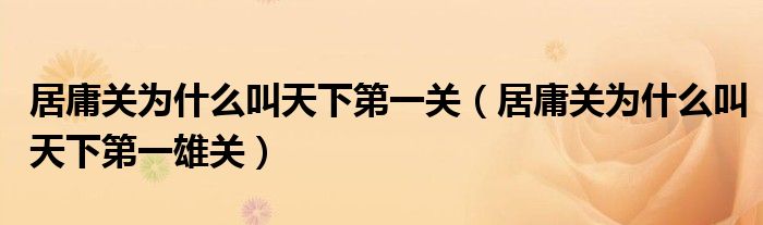 居庸关为什么叫天下第一关(居庸关为什么叫天下第一雄关)