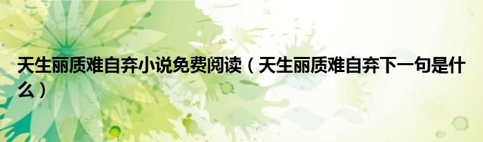 天生丽质难自弃小说免费阅读(天生丽质难自弃下一句是什么)