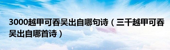 导读 大家好,田田为了大家解答以上3000越甲可吞吴出自哪句诗,三千越甲可吞吴出自哪首诗的问题,也是到网上收集了关与3000越甲可吞吴出自哪句诗