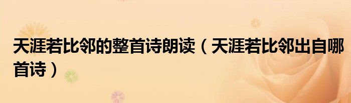 天涯若比邻的整首诗朗读(天涯若比邻出自哪首诗)