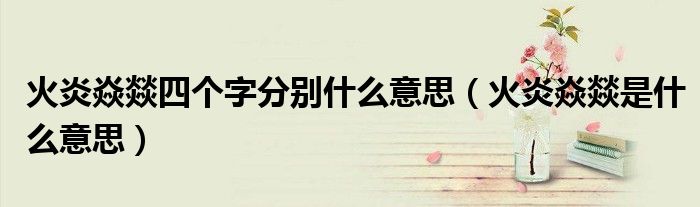 导读 大家好,田田为了大家解答以上火炎焱燚四个字分别什么意思,火炎焱燚是什么意思的问题,也是到网上收集了关与火炎焱燚四个字分别什么意思,