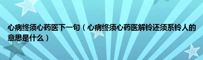 心病终须心药医下一句(心病终须心药医解铃还须系铃人的意思是什么)