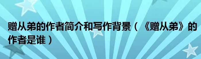 赠从弟的作者简介和写作背景(《赠从弟》的作者是谁)