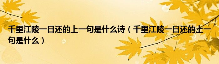 千里江陵一日还的上一句是什么诗(千里江陵一日还的上一句是什么)