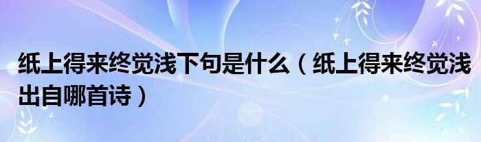 纸上得来终觉浅下句是什么(纸上得来终觉浅出自哪首诗)