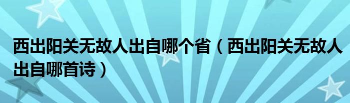 西出阳关无故人出自哪个省(西出阳关无故人出自哪首诗)