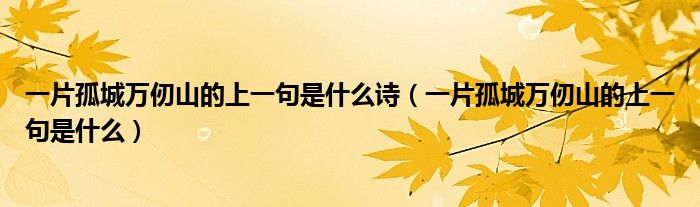 一片孤城万仞山的上一句是什么诗(一片孤城万仞山的上一句是什么)