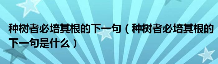 种树者必培其根的下一句(种树者必培其根的下一句是什么)