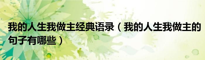 我的人生我做主经典语录(我的人生我做主的句子有哪些)