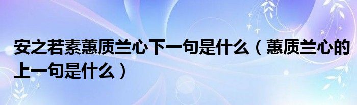 安之若素蕙质兰心下一句是什么(蕙质兰心的上一句是什么)