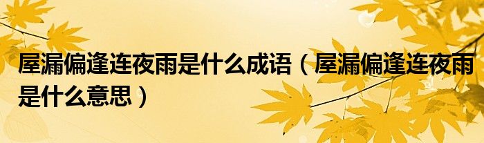 屋漏偏逢连夜雨是什么成语(屋漏偏逢连夜雨是什么意思)