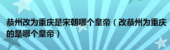 恭州改为重庆是宋朝哪个皇帝(改恭州为重庆的是哪个皇帝)