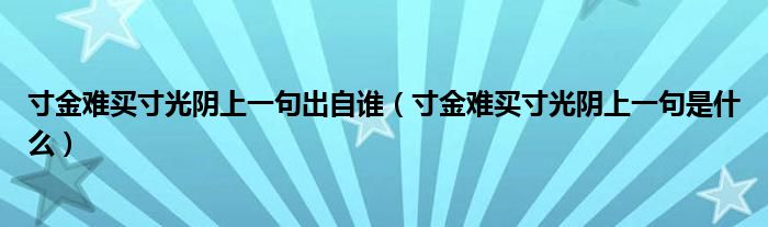 寸金难买寸光阴上一句出自谁(寸金难买寸光阴上一句是什么)