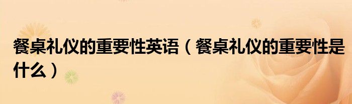 餐桌礼仪的重要性英语(餐桌礼仪的重要性是什么)