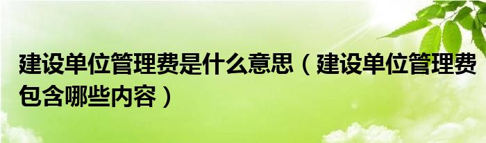 建设单位管理费是什么意思(建设单位管理费包含哪些内容)
