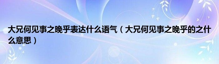 导读 大家好,田田为了大家解答以上大兄何见事之晚乎表达什么语气,大兄何见事之晚乎的之什么意思的问题,也是到网上收集了关与大兄何见事之晚乎