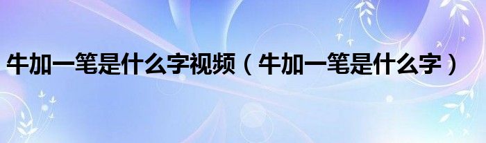 牛加一笔是什么字视频(牛加一笔是什么字)