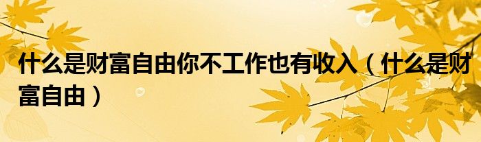 什么是财富自由你不工作也有收入(什么是财富自由)