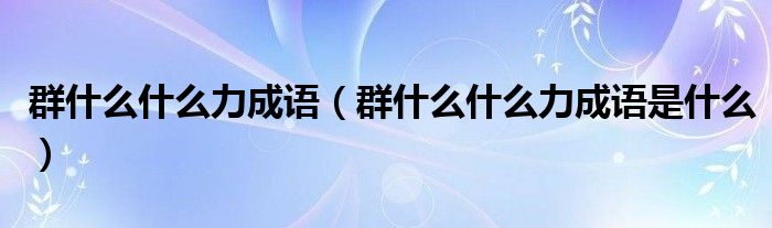 导读 大家好,田田为了大家解答以上群什么什么力成语,群什么什么力成语是什么的问题,也是到网上收集了关与群什么什么力成语,群什么什么力成语