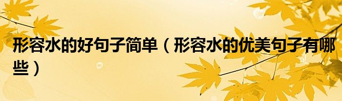 导读 大家好,田田为了大家解答以上形容水的好句子简单,形容水的优美句子有哪些的问题,也是到网上收集了关与形容水的好句子简单,形容水的优美
