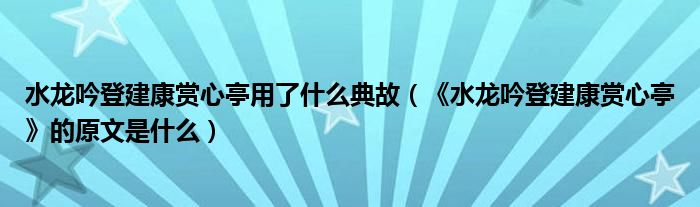 导读 大家好,田田为了大家解答以上水龙吟登建康赏心亭用了什么典故,《水龙吟登建康赏心亭》的原文是什么的问题,也是到网上收集了关与水龙吟登