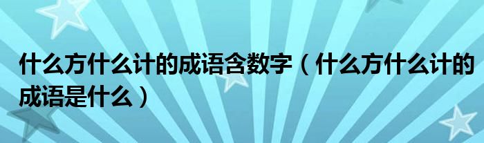 什么方什么计的成语含数字(什么方什么计的成语是什么)