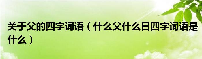 大家好,田田为了大家解答以上关于父的四字词语,什么父什么日四字词语是什么的问题,也是到网上收集了关与关于父的四字词语,什么父什么日四字词语是什么的信息,下面分享给大家一起了解下吧。
