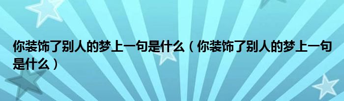 你装饰了别人的梦上一句是什么(你装饰了别人的梦上一句是什么)