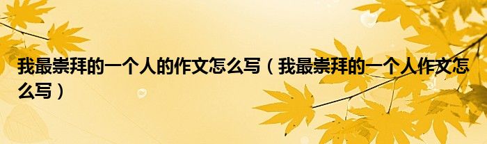 我最崇拜的一个人的作文怎么写(我最崇拜的一个人作文怎么写)