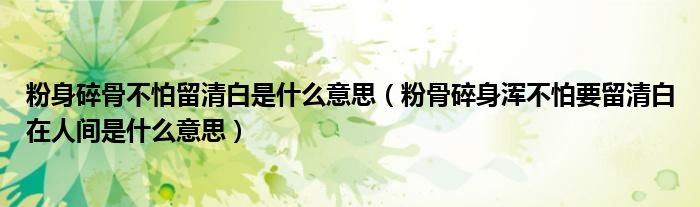 粉身碎骨不怕留清白是什么意思(粉骨碎身浑不怕要留清白在人间是什么意思)