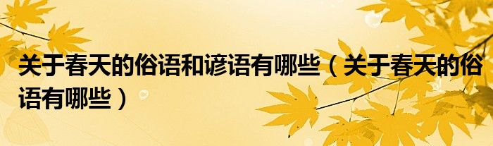关于春天的俗语和谚语有哪些(关于春天的俗语有哪些)