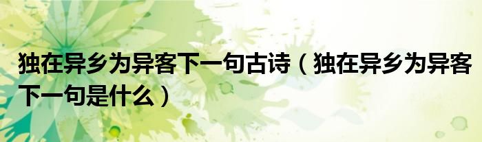独在异乡为异客下一句古诗(独在异乡为异客下一句是什么)