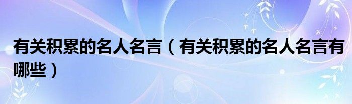 有关积累的名人名言(有关积累的名人名言有哪些)