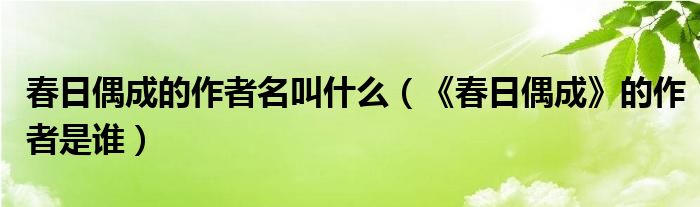 春日偶成的作者名叫什么(《春日偶成》的作者是谁)