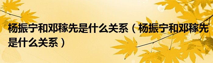 杨振宁和邓稼先是什么关系(杨振宁和邓稼先是什么关系)