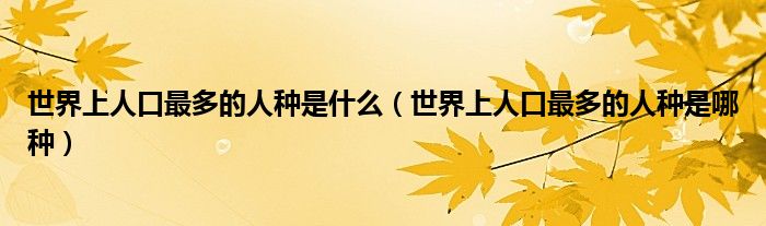 1、 世界上人口最多的人种是哪种人口最多、分布最广的种族是白人。
