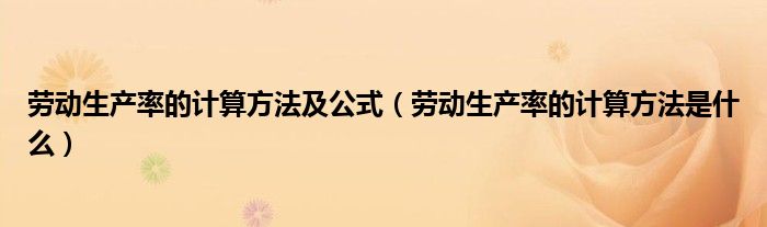 劳动生产率的计算方法及公式(劳动生产率的计算方法是什么)