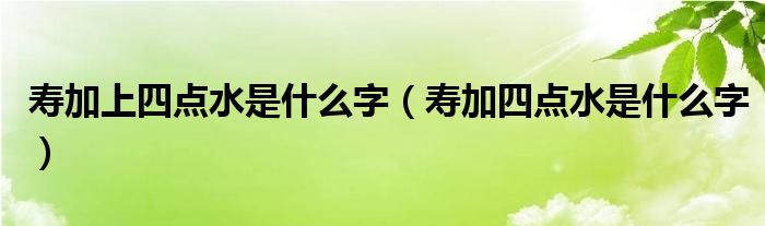 导读 大家好,田田为了大家解答以上寿加上四点水是什么字,寿加四点水是什么字的问题,也是到网上收集了关与寿加上四点水是什么字,寿加四点水是
